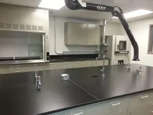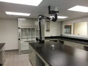 The first phase included remodeling the office space and 50% of the lab spaces, 75% through the construction the phase one labs were completed and Elantas staff was moved to the new areas while phase two rooms were remodeled. Keeping parts of the building occupied during construction required maintaining coordination with both the general contractor and the owner with systems needing to be designed to allow for phase one labs to be operational without entering phase two areas and phase two labs to be completed without entering phase one.